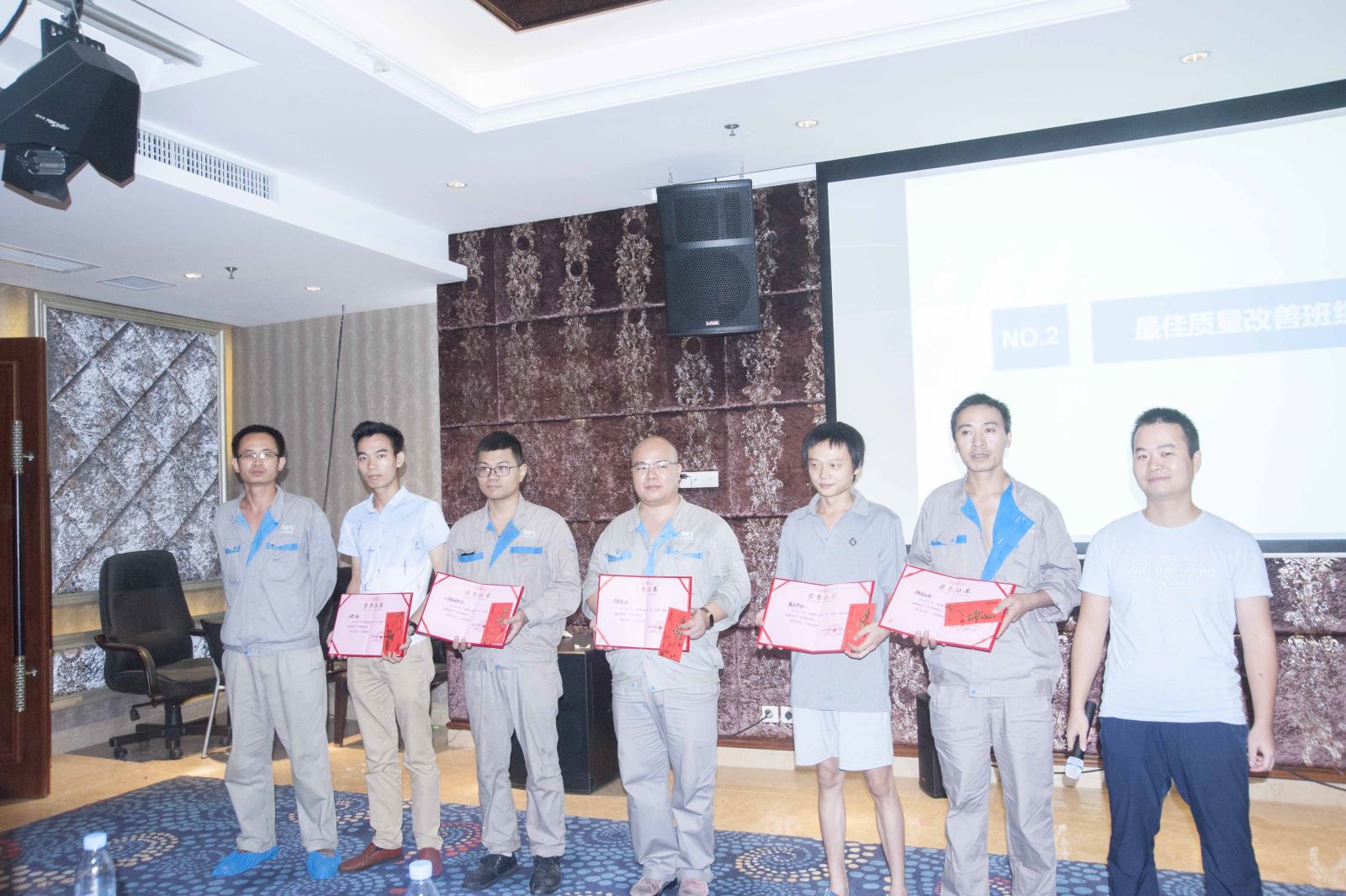 本次質量改善(shàn)月曆時6、7、8三個月,根據各產線班(bān)組的實際質量改善(shàn)情況,由各產線負(fù)責人及產線班長組成評委會,采(cǎi)用現場演講、現場打分、現場統計評選、現場表彰的(de)方式(shì),共(gòng)評選出“質量先進個人”8人、“最佳質(zhì)量(liàng)改善班組”5個(gè)班組。