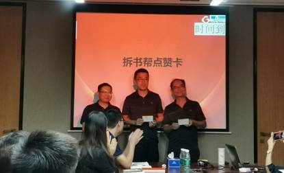 由(yóu)所有參(cān)與者共同投(tóu)票選取了本場拆書活動中最受歡迎“拆書家(jiā)”,他們(men)分別是銷售二部陳偉聰、國際貿易部刁學(xué)千,華美板(bǎn)材副(fù)