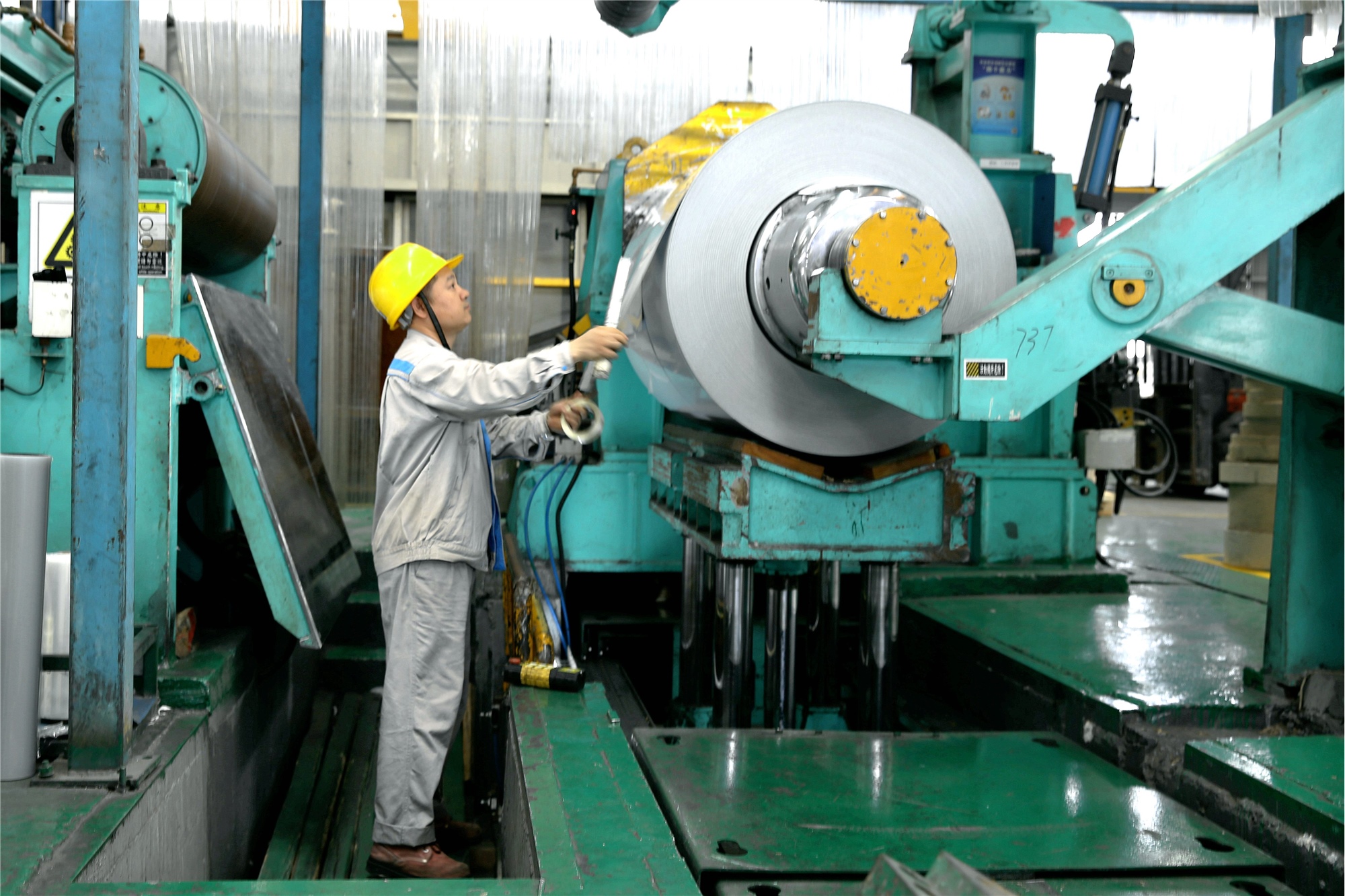 ▲ 一卷彩塗板正在上剪(jiǎn)切(qiē)機