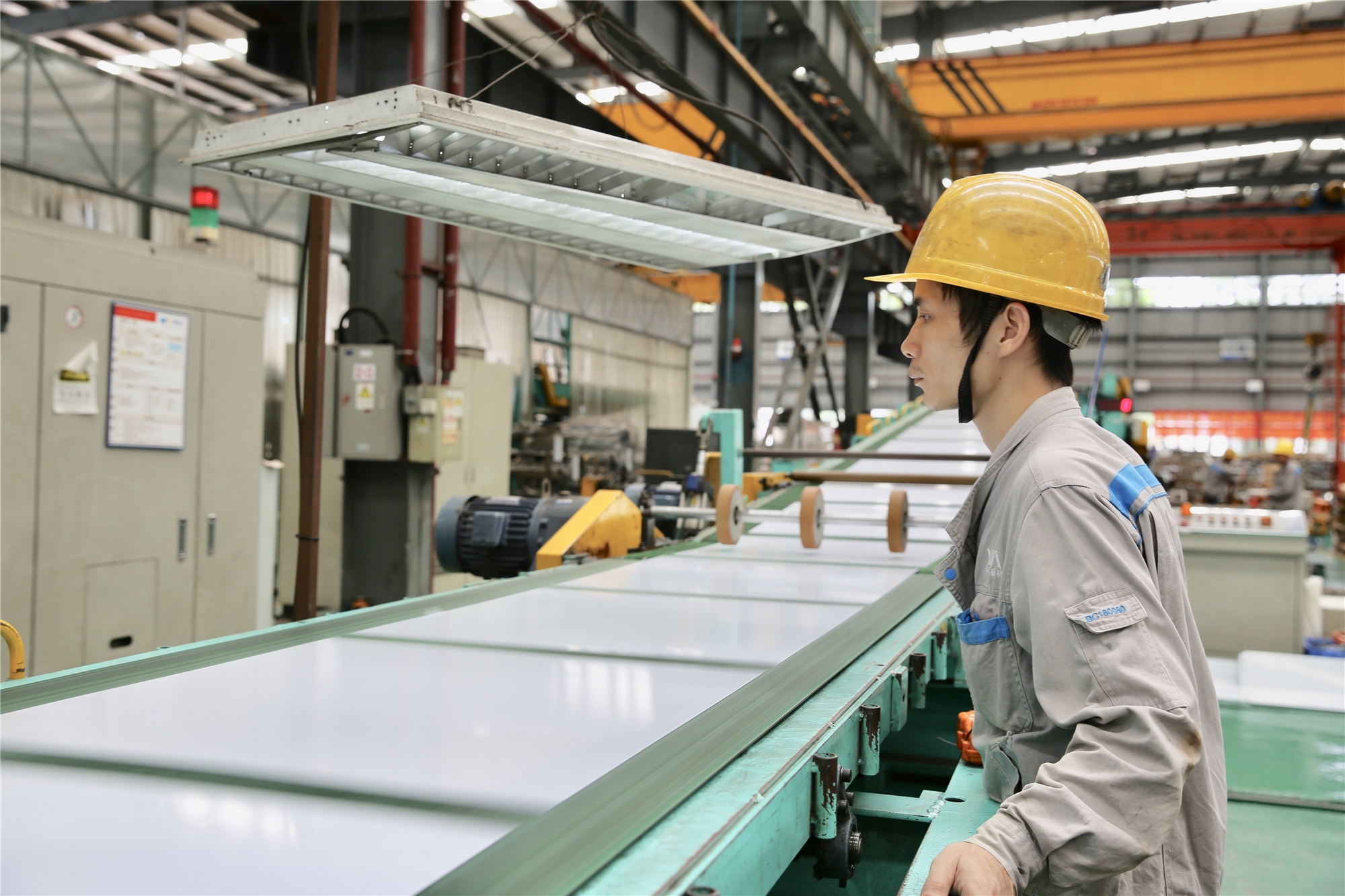 在板材生產部(bù),剪切車間的人數是(shì)最多的,有90多名員工,因為作為整(zhěng)條工藝(yì)的最後一環,剪切產量直接關係到產品出貨量,在這裏,速度就是(shì)效益。