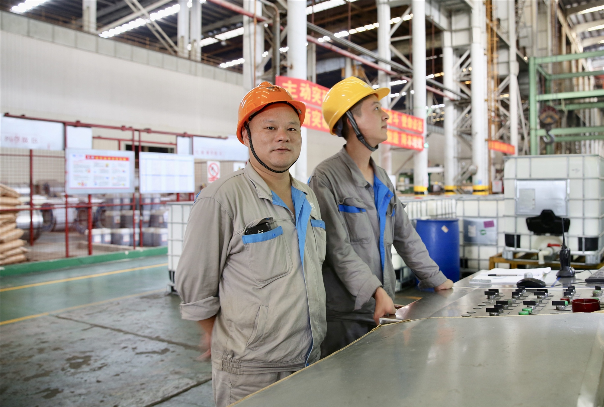 ▲ 殷國軍(左)在鍍鋅車間接(jiē)受采訪