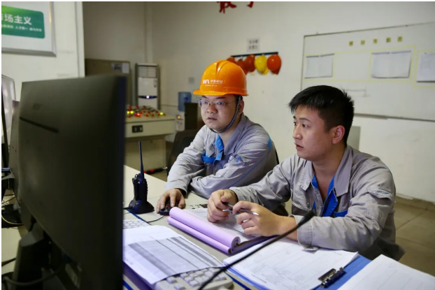 ▲ 黃申(左)在監控室查(chá)看設備狀態