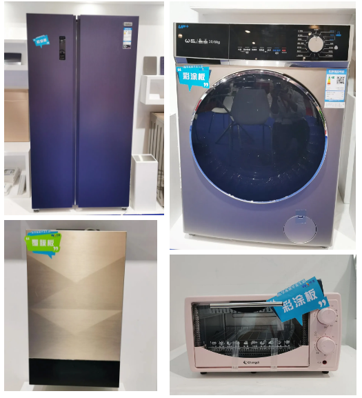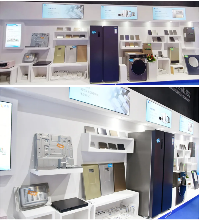 參展的家電領域產品(pǐn)有:家電(diàn)鍍(dù)鋅薄板、彩(cǎi)塗板、覆膜板,產品應用於家電產品(pǐn)的麵板、側板、背板等。本次參(cān)展將品牌家電與華美科技的產品樣片相結合展示,更好的詮釋了華美科技(jì)“樂享未來華(huá)美生活(huó)”這一使命。